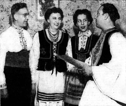 Among other parts of the program presented by Mr. Colchagoff, a Bulgarian native, students were presented a historical, geographical and sociological background of Bulgaria. Little did they realize that Bulgaria enjoys a climate exactly like that of Ohio, U.S.A. being on the same latitude plane. Likewise, the population parallels that of Ohio while customs obviously are different. The chief product manufactured for international trade, rose oil, ranks among the main sources of national wealth. Arbor Hills spokesmen noted they are especially indebted to Toledo's International Institute for their generous cooperation in the presentation of this program and to Pat Brunner, a Steering Committee mother, who has aided us throughout the course of the year in preparing the Special Guest Program; as an adjunct to the traditional Activity Period. Friday's program concluded with a group participation in a traditional folk-dance of Bulgaria. |