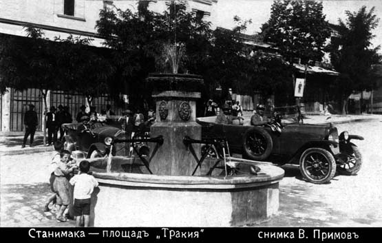 [Printed text of the card:Stanimaka - square "Trakija" Photo